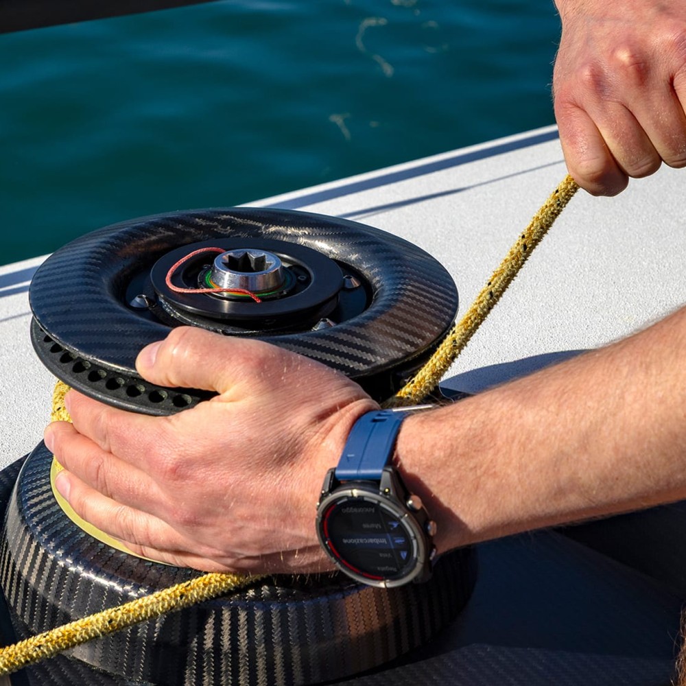 quatix® 8 er den nyeste generasjonen nautiske smartklokken, designet for å levere eksepsjonell ytelse om bord og i hverdagen. Utstyrt med innebygd høyttaler og mikrofon, gir den direkte stemmekontroll av kompatible instrumenter om bord og lar deg svare på anrop uten å ta øynene fra vannet. Den er tilgjengelig i to størrelser – 47 mm og 51 mm – og har en strålende 1,4-tommers AMOLED-skjerm, ripebestandig safirglass, titanramme og nye, helt vanntette metallknapper.