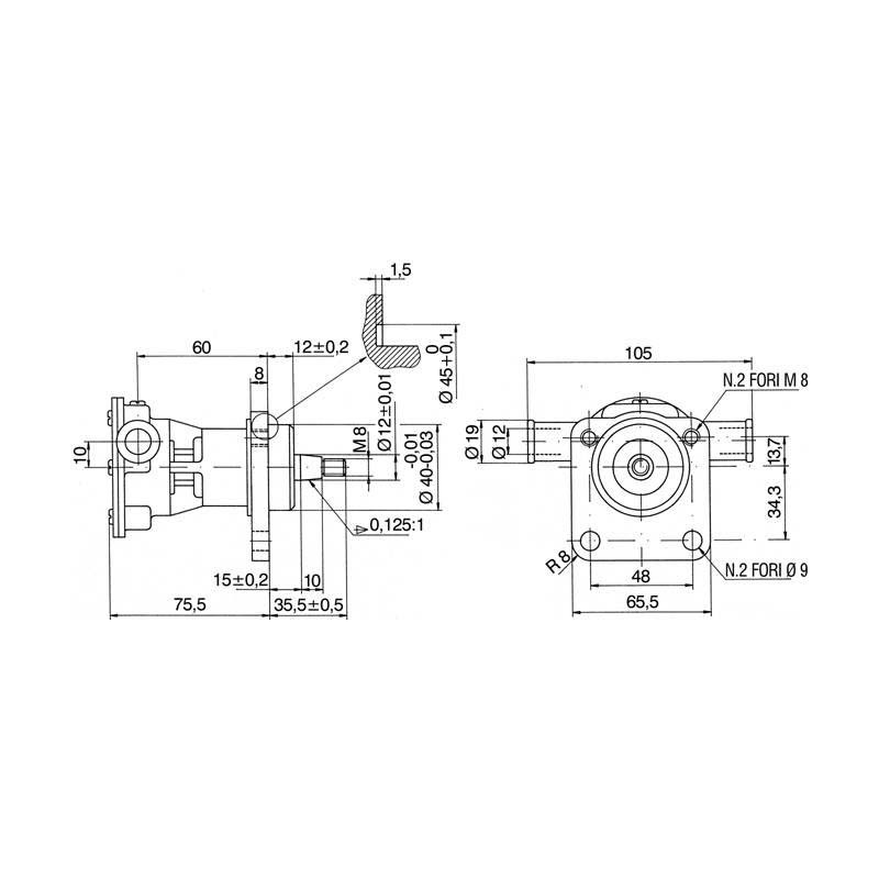 Selvsugende bronsepumpe, neoprenimpeller, for motorkjøling, Ø 20 mm slangekobling, strømningshastighet 9/18 l/min. for Perkins-motorer.