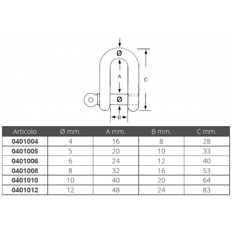 Schacklar med skruvstift i rostfritt stål AISI 316.