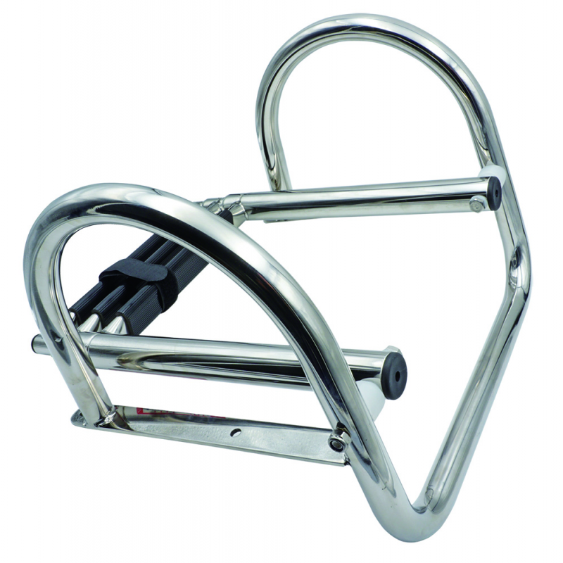 Teleskopisk och hopfällbar stege i rostfritt stål AISI 316 med handtag.
