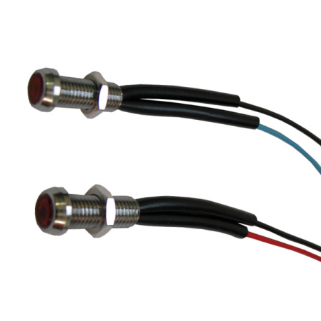 Röd LED-indikatorlampa, förkromad mässingskropp, polykarbonatlins.