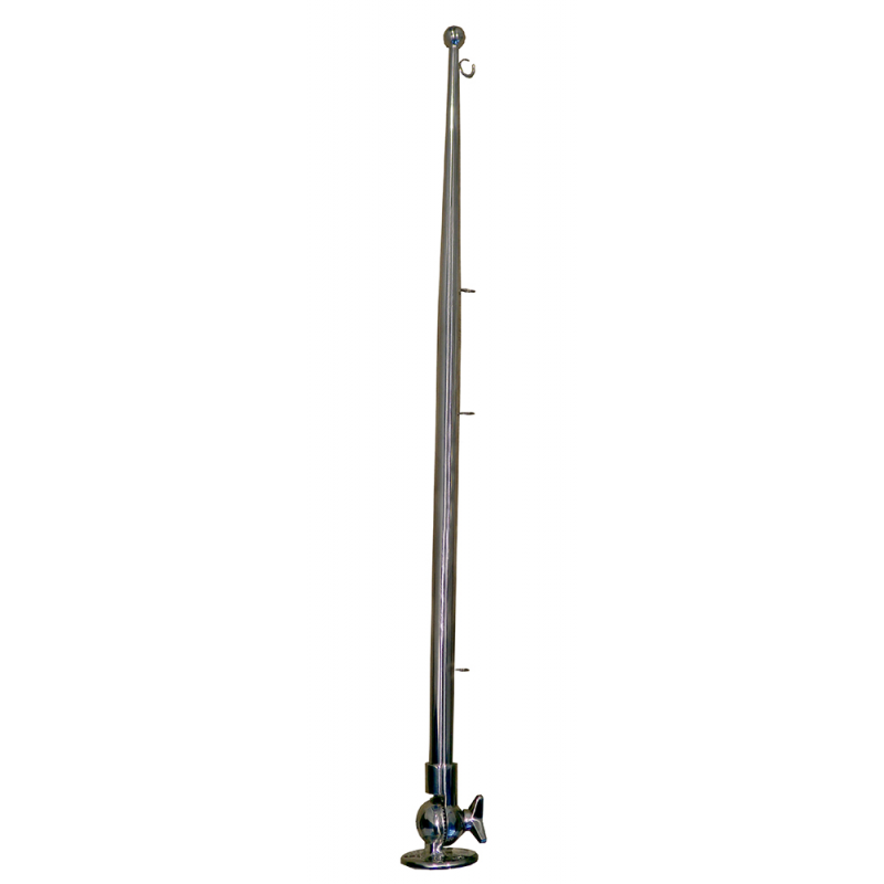 Hopfällbar flaggstång i rostfritt stål, komplett med ledad bas med 30 mm diameter i rostfritt stål AISI 316, 66 cm lång x 19 mm tjock.