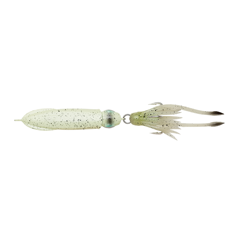 Baserad på en 3D-skanning av en riktig bläckfisk, perfekt för djup jiggfiske med långsam pitch efter stora rovfiskar. Fantastisk fiskeupplevelse förstärkt av inre skrammel och superglöd och UV-effekter som ökar dess attraktionskraft.