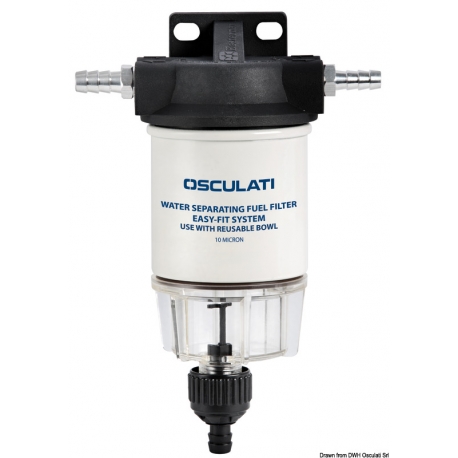 Topp i kompositteknopolymer, transparent tank med snabb dränering. 10-mikrons patron. Komplett med slangkopplingar (två 10 mm, två 8 mm).