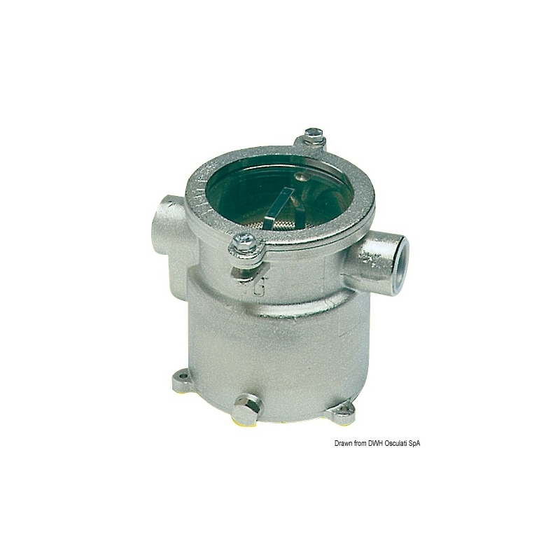 Tillverkad av förnicklad brons och polykarbonatskiva. De är monterade på motorns vattenintag. De är lätta att inspektera. Uppfyller RINA- standarder med deklaration 11/447/88 DIP.