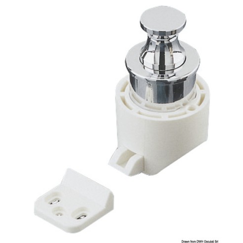 Extremt kompakt och fungerar perfekt; efter att dörren stängts aktiveras en säkerhetsspärr genom att trycka på vredet som förhindrar att den öppnas igen förrän vredet trycks in igen och dras ut. Lämplig för tjocklekar från 15 till 30 mm, kapacitet 10 kg.