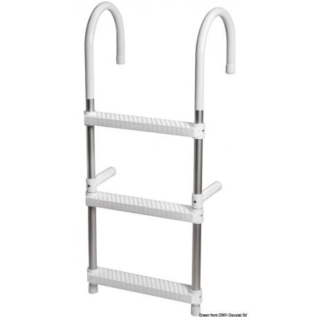Anodiserat aluminiumrör. Steg i teknopolymer. Fällbara armar. Flytanordning.
