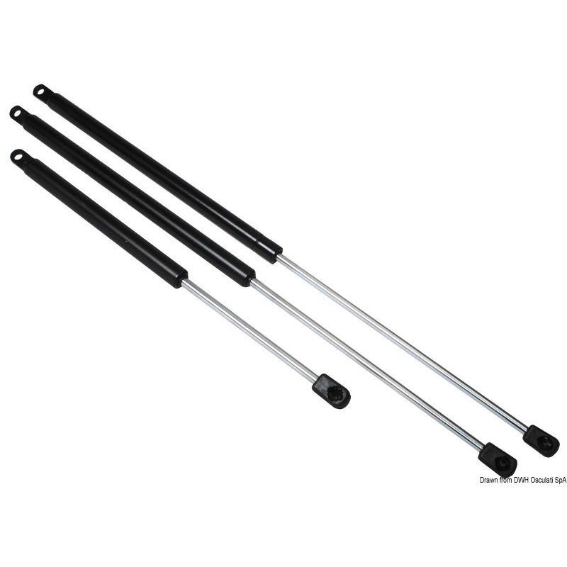 Gasfjäder i lackerad stål med ögla och kula