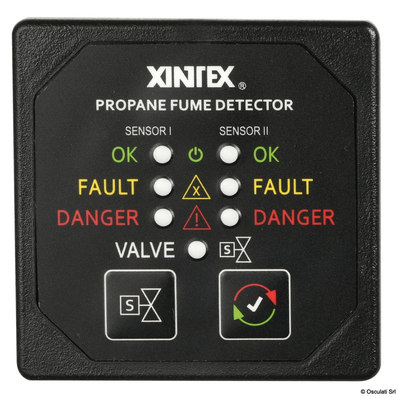 Komplett med 2 sensorer som kan placeras där det passar och en magnetventil . Vid gasläcka aktiverar den en LED-ljussignal + 68 dB ljudlarm och stänger av gasen via magnetventilen.
