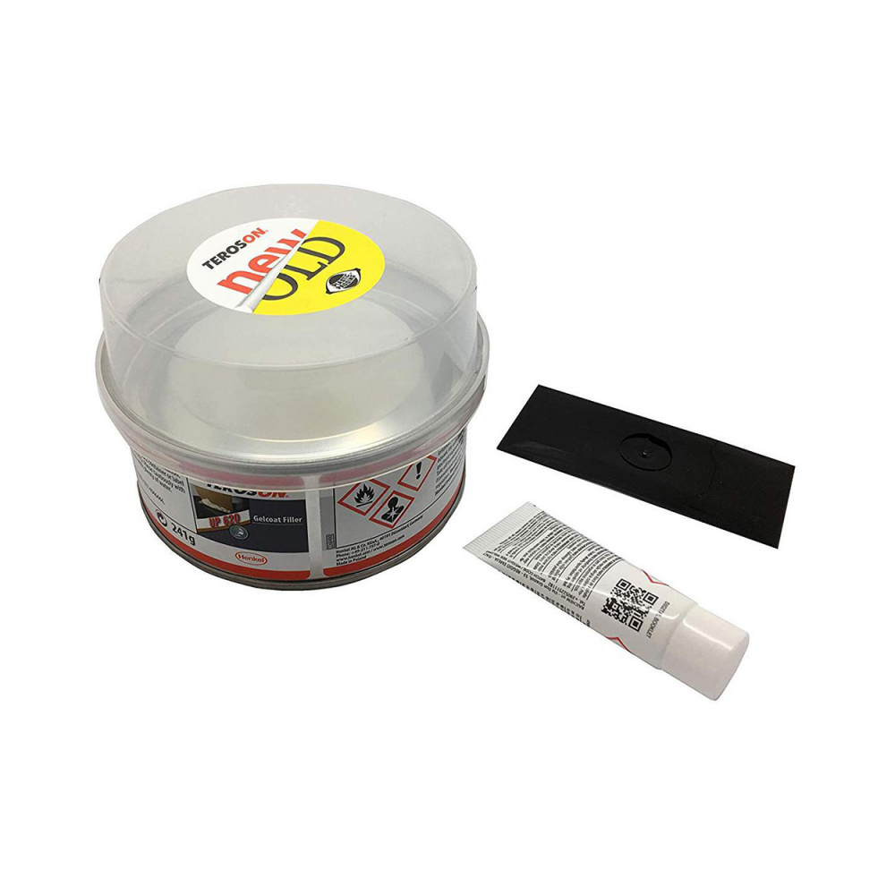 Gelcoat Filler reparations- och ytbehandlingskit för glasfiberskrov, vit. Lämplig för reparation av även större skador på glasfiberbåtar och husvagnar. Kan pigmenteras eller målas med alla nautiska färger. Inkluderar instruktioner.