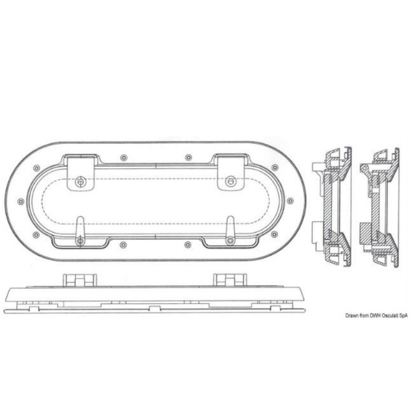 Nylonhölje med utvändig avslutningsring och myggnät. Justerbara stopp. Rökt akrylglas.