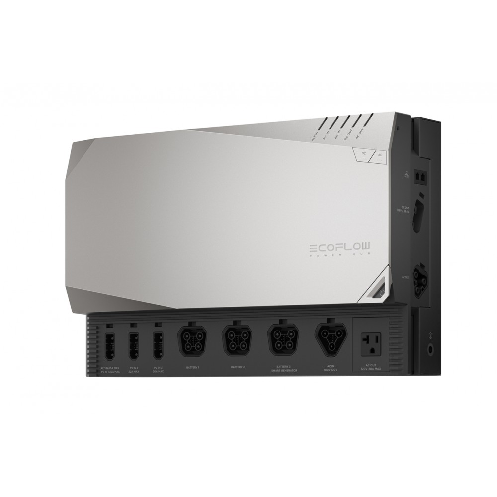 Kit med Ecoflow Powerhub, anslutningskabelpaket för power hub, 2 installationssatser och 2 RJ-45 CANBUS-terminatorer
