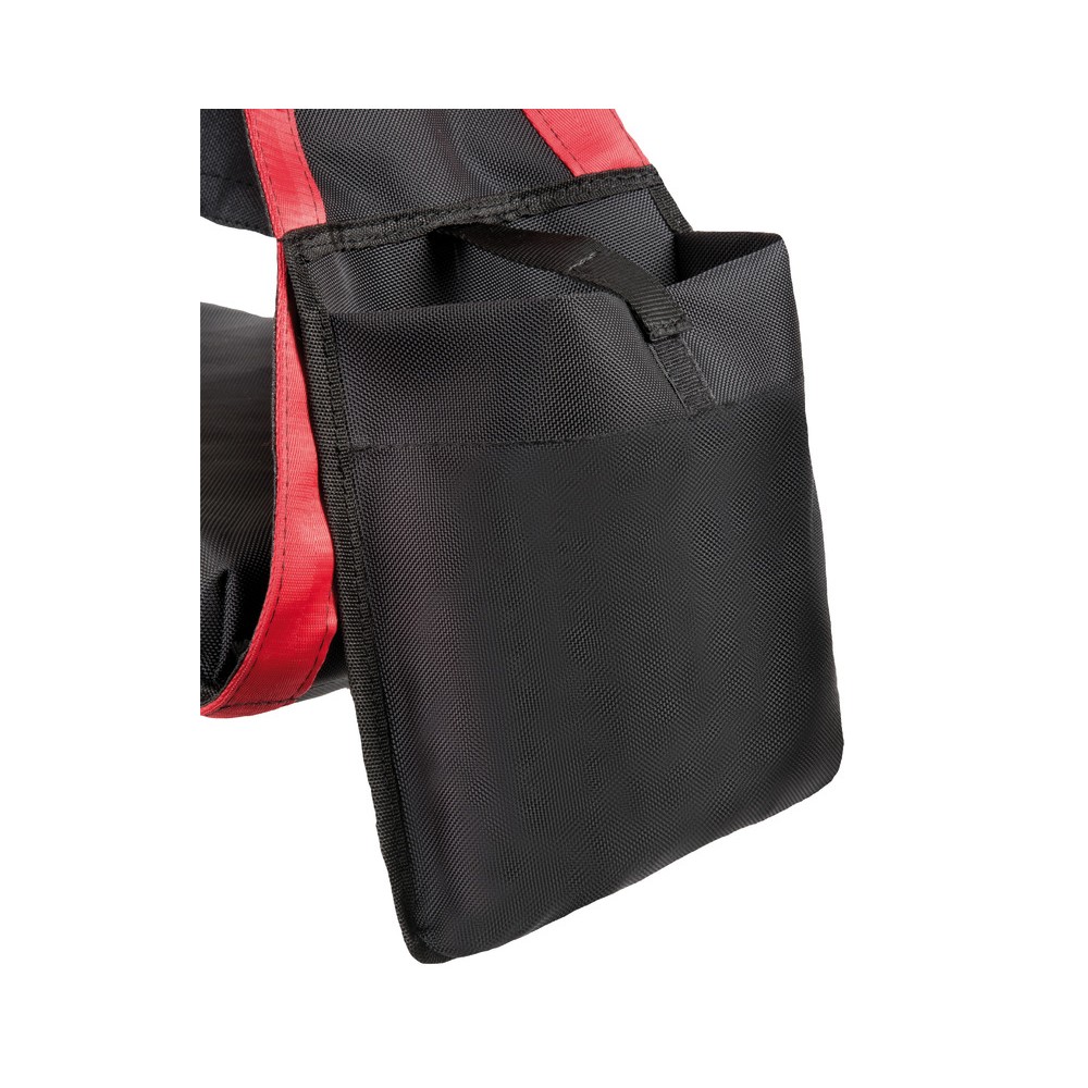 Vadderad sits (50 mm tjock), stor storlek (45 x 30 cm) för maximal komfort. Utrustad med två stora sidofickor, 26 x 23 cm. Komplett med ventilerande förvaringsväska.