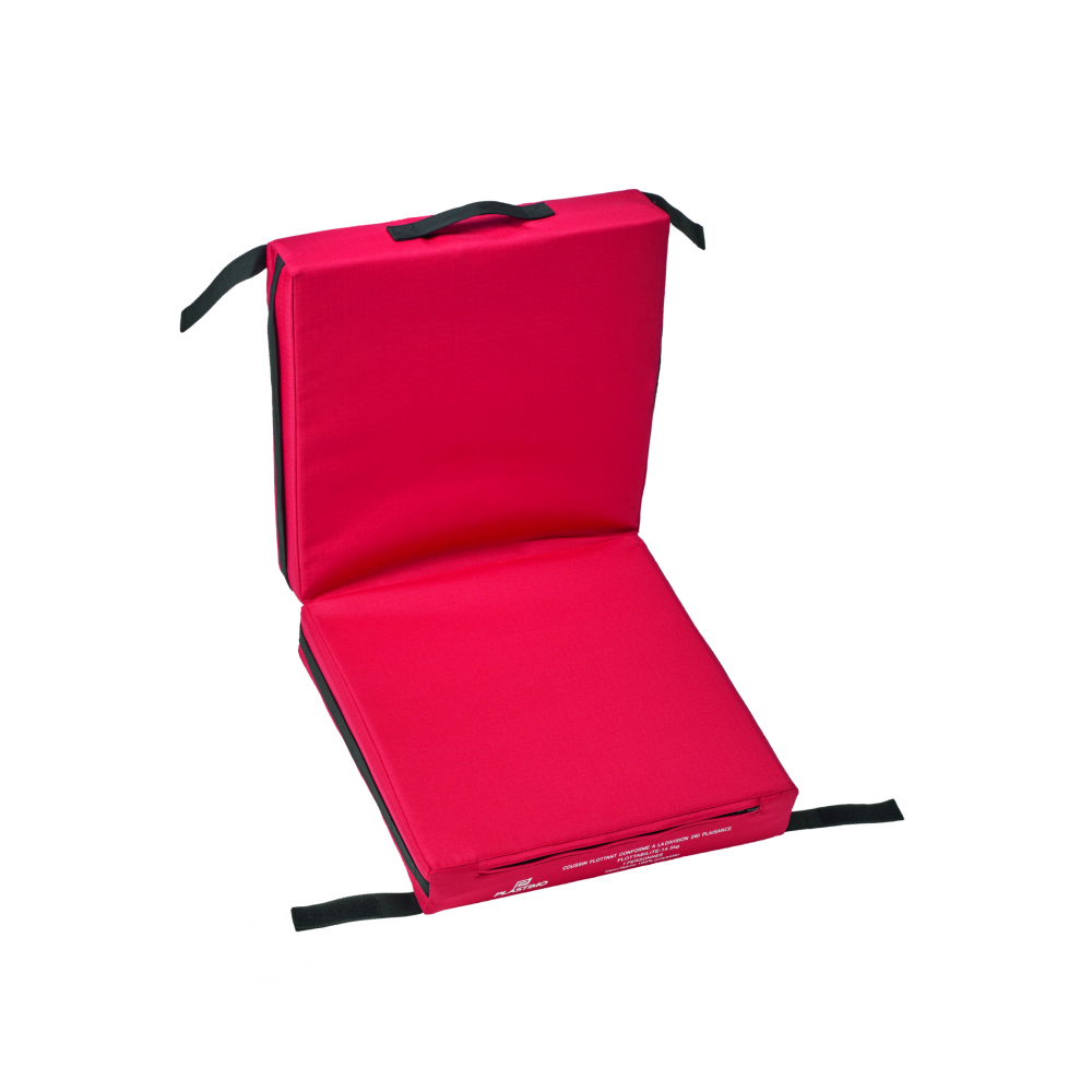 Flytkuddar tillverkade av lätt polyetenskum täckta med ett mycket slitstarkt belagt tygfoder. De är bekväma att sitta på och ger flytväst vid en man-över-bord-olycka. En rund snöre säkerställer ett bra grepp. En krok möjliggör fastsättning på däck. Lätt att underhålla tack vare det tvättbara fodret. De kan sköljas med färskvatten och torkas i solen. Två individuella kuddar kan sammanfogas med hjälp av ett integrerat kardborreband. Mått: 740 x 370 x 75 mm.
