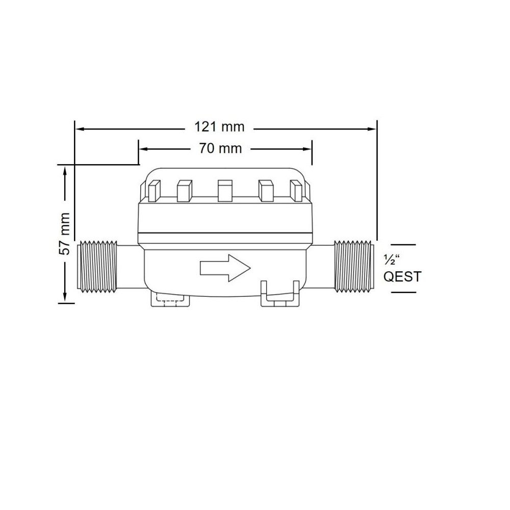 Pumpgard förfilter med 40 mesh per kvadrattum (cirka 0,4 mm öppningar) i linje med 1/2" gängade slanganslutningar vardera. Maximalt flöde på 23 LPM (6 GPM). Maximalt tryck 5 bar (70 PSI). Mått: längd ca 121 mm / bredd ca 70 mm / höjd ca 57 mm