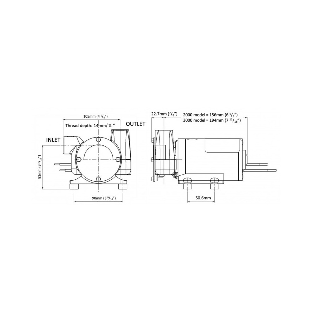 Säker, högpresterande, kontinuerligt torrgående pump för länsvatten, däckrengöring och allmänna uppgifter. Självsugande upp till 2,4 m. Flödeshastighet 50 liter/minut max, 45 l/m på 2 m höjd. Kan köras torrt i upp till 10 minuter (efter föregående användning). Har en hållbar mekanisk tätning. Med bronspumphuvud och oljebeständigt nitrilimpeller. Anslutningar: För 19 mm (3/4") BSP-utvändig gänga i kombination med 25 mm (1") innerdiameter slang (ingår ej). Strömförbrukning 11 A, säkring 15 A. Mått: Höjd 9 cm / Bredd 12 cm / Längd 22 cm