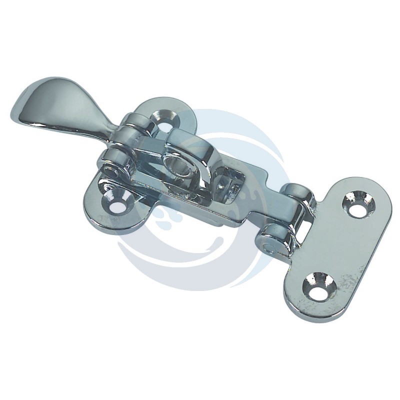 Lås i förkromat mässing med hänglåshållare. Mått: 110x50x23 mm.