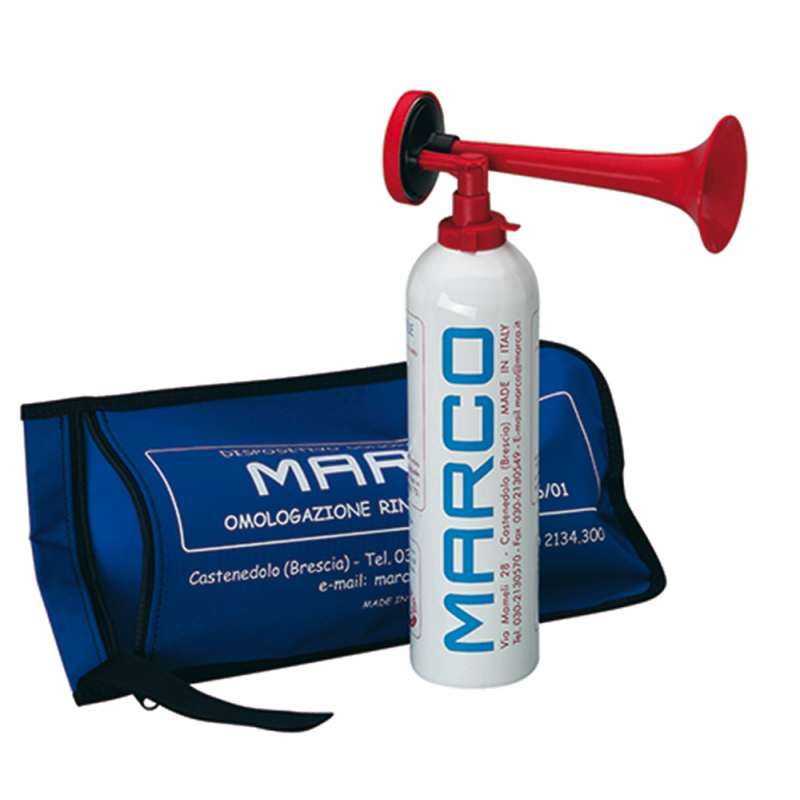 Bärbar akustisk varningsanordning lämplig för fritidsbåtar med en längd på mellan 12 och 50 m. 750 ml flaska innehållande icke-brandfarlig HFA (134A) ekologisk gas. RINa-godkännande. ELE/80596/01. Byte av klocka tillåtet på fritidsbåtar med en längd på mindre än 50 m (DL 05/09/1990 nr 421).